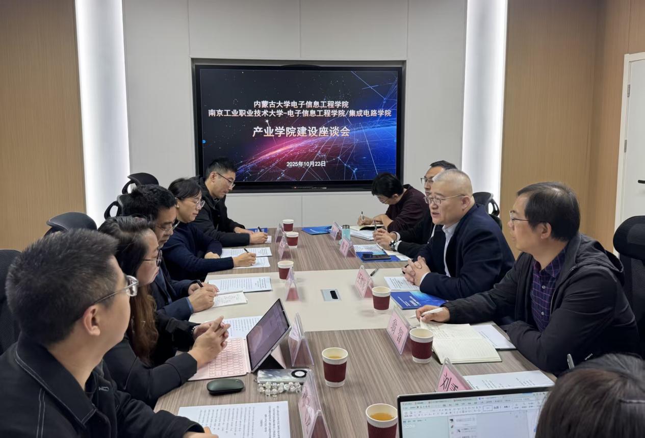 2025年10月22日,南京工业职业技术大学电子信息工程学院/集成电路学院领导莅临我院,围绕现代产业学院的建设开展调研交流参观活动。自治区级智能制造现代产业学院共建单位北京匠成教育科技有限公司相关负责人、我院院长王树彬、副院长翁智、副院长韩丁、电子信息科学与技术系系主任雷雪梅、通信工程系系主任魏永峰、教务科研办主任刘秉琦、实验室管理中心副主任阿音呼等参与座谈交流活动。