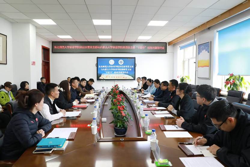中午12时,调研团队转至东北师范大学体育学院,在该院3楼会议室开展专题座谈,会议由东北师范大学体育学院院长范尧主持。我校体育学院党委书记温毅刚、党委副书记刘忠良,电子信息工程学院党委副书记钱超时、团委书记兼学生工作办公室副主任吴岩,体育学院行政办公室主任阿如拉、团总支副书记兼学生工作办公室副主任呼日查、行政办公室副主任及行政党支部书记徐海飞、运动训练专业教研室主任及教师党支部书记丁鑫旸、学生党支部委员及专业课教师王子怡共同参会;东北师范大学体育学院党委副书记杨志、办公室主任王昶、工会主席及田冰党支部书记陶玉晶、团委书记霍奎先、实践教学办公室主任及田冰党支部委员刘佳男、田冰党支部委员陈然及田冰党支部全体党员出席会议。
